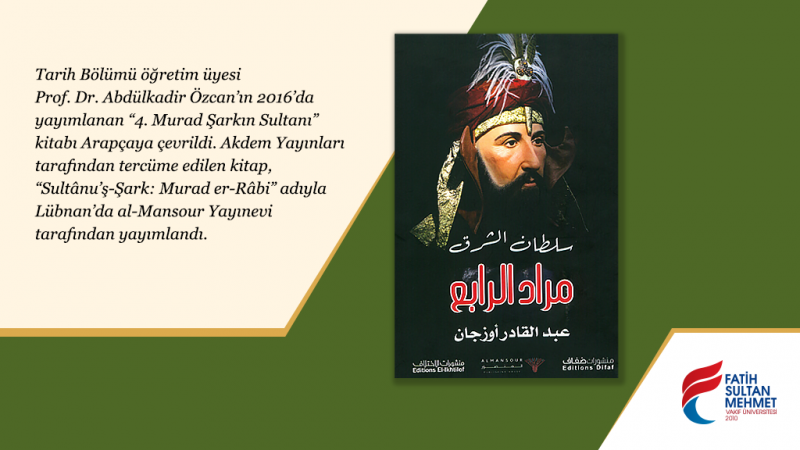 Tarih Bölümü öğretim üyesi Prof. Dr. Abdülkadir Özcan’ın 2016’da yayımlanan “4. Murad Şarkın Sultanı” kitabı Arapçaya çevrildi.